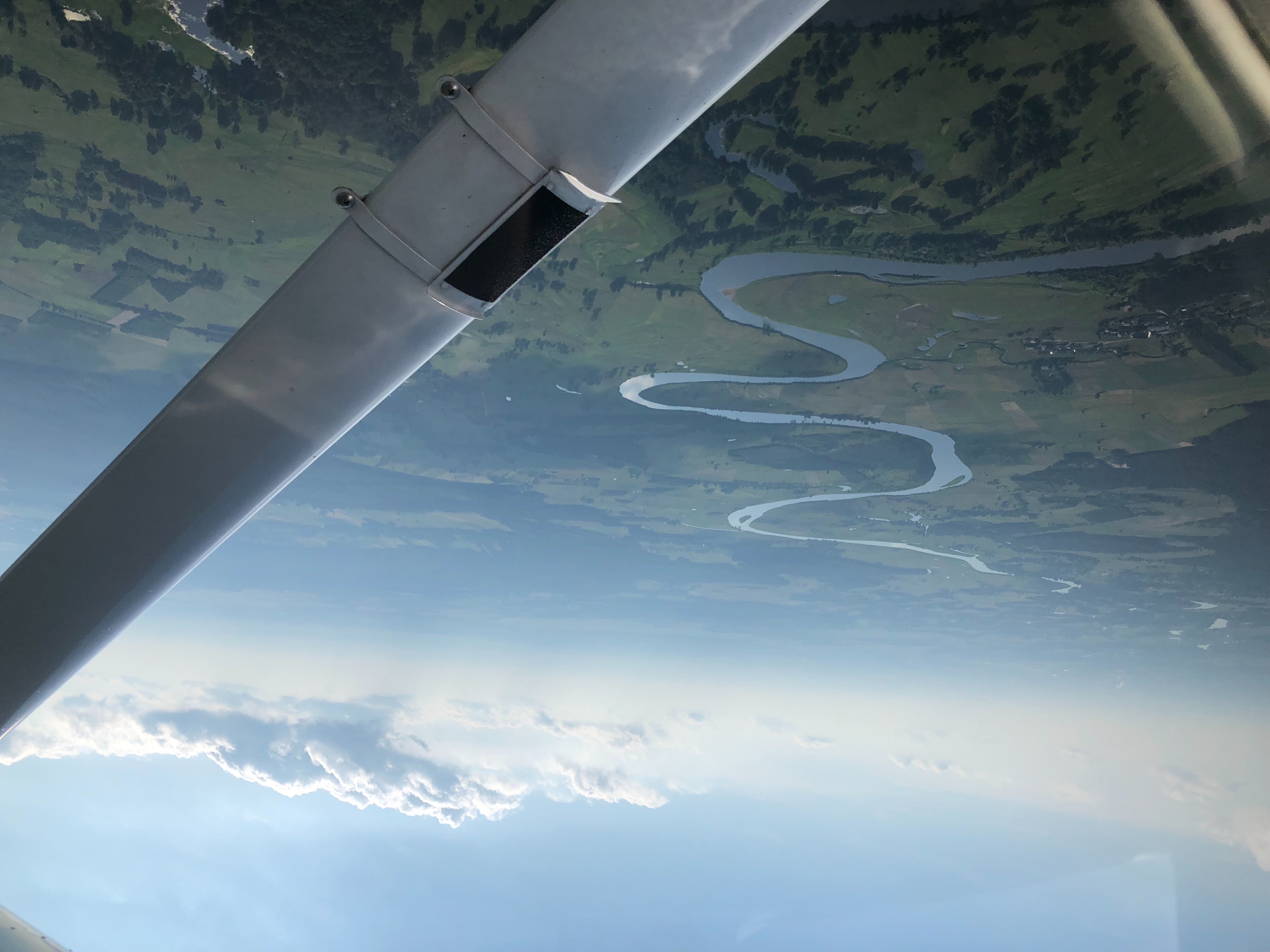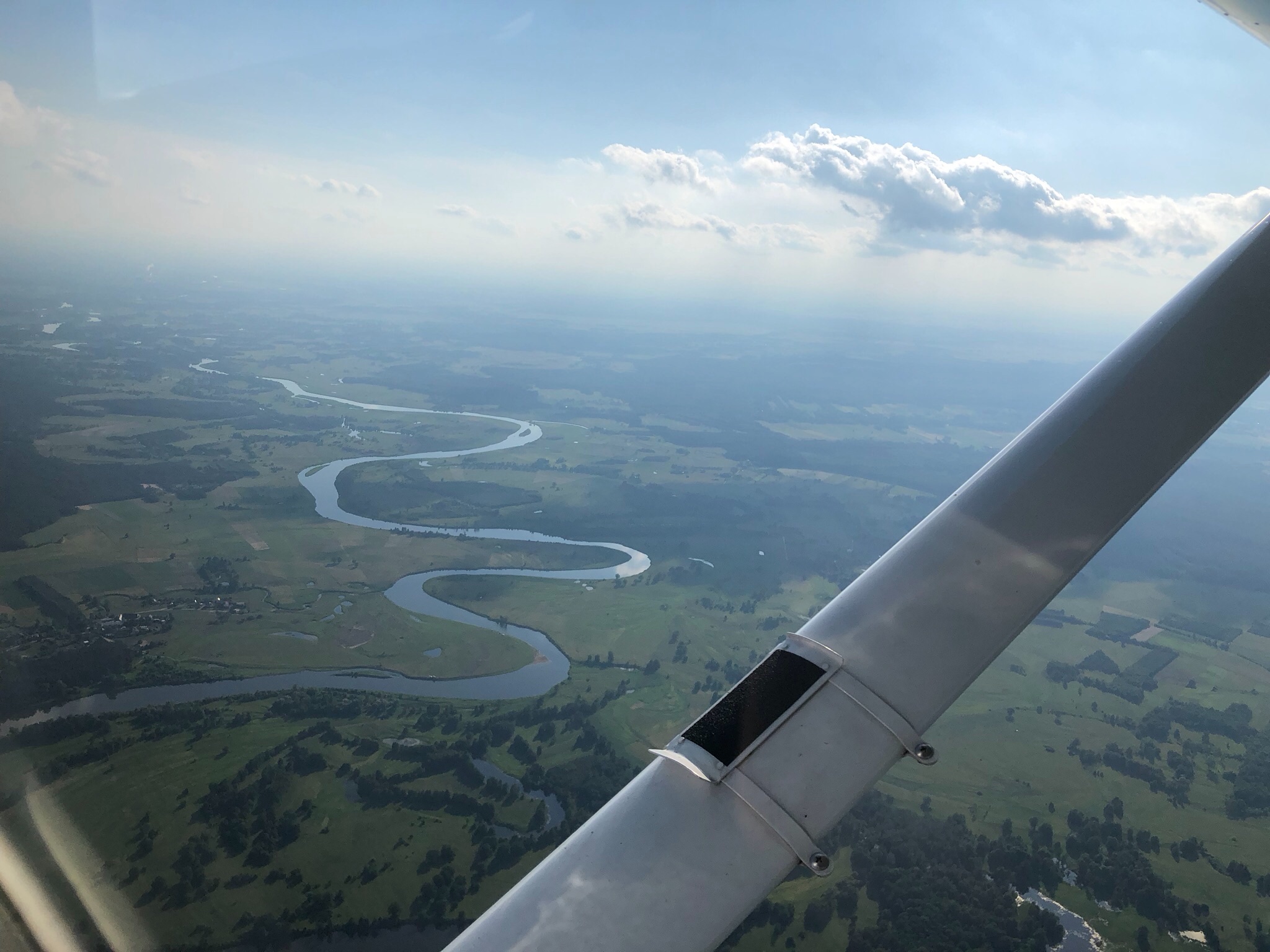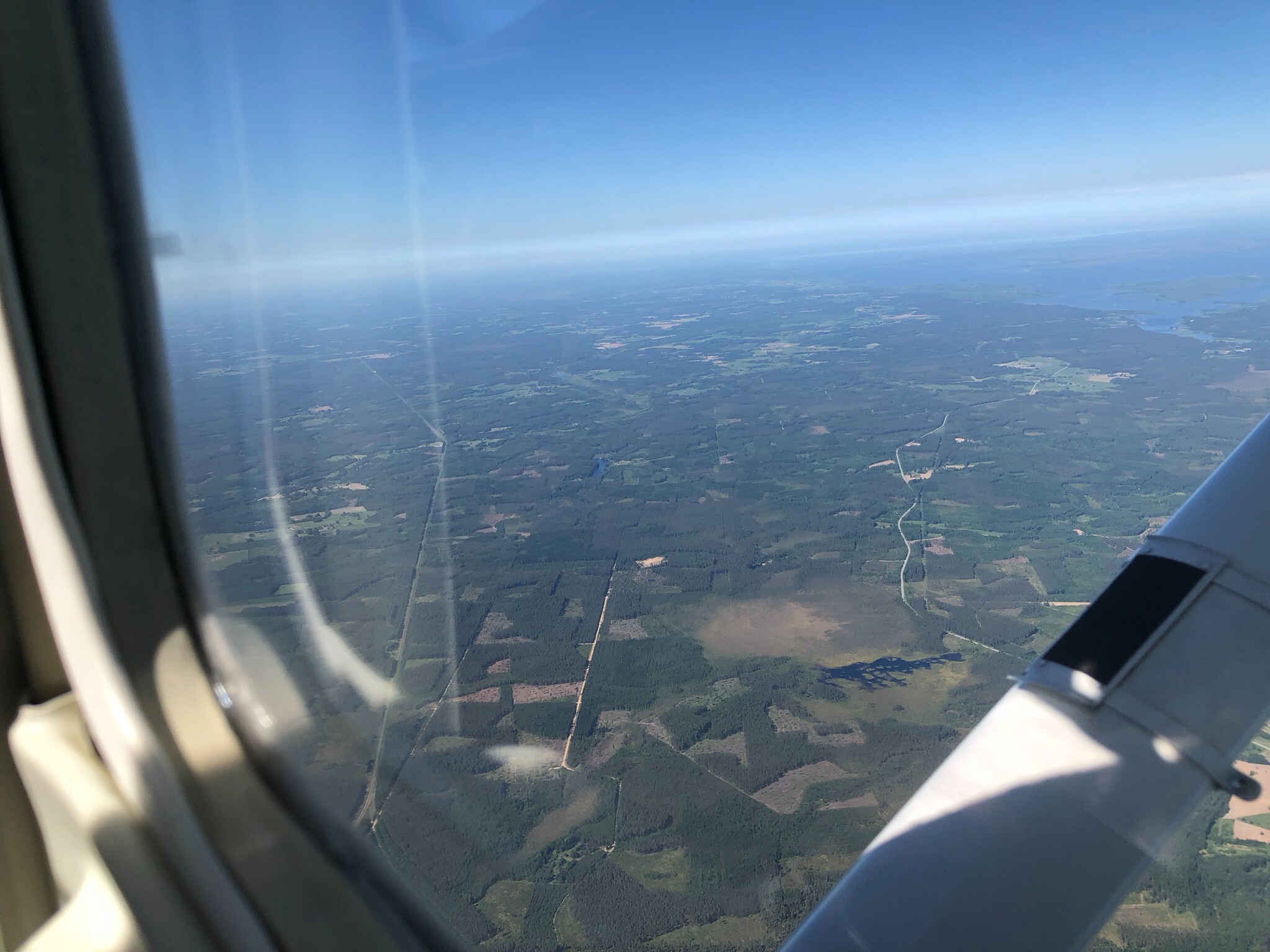 Латвия нас встретила ярким слонцем, безоблачным небом, и опять, полным отсутствием связи и самолетов на частоте Риги. Уж было начали сомневаться, может с радиостанцией что, но подлетая к Литве и переключившись на частоту Шауляй (прочитав по-английски название Siauliai конечно мы его искаверкали как могли, пока сам Шауляй не назвал себя и произносить его стало гораздо легче) мы поняли, что радио работает. Более того, Шауляй даже спросил (он был первым на всем маршруте от Северки) почему он не видит нашу высоту на радаре. После ответа о проблеме с энкодером он просто спросил нас о текущей высоте и больше вопросов не задавал. А Еще, когда мы пролетали рядом с военным полигоном, он предупредил, что мы близко к запретной зоне, которая работает, и успокоился, когда ответили, что мы ее облетим. Собственно маршрут был рядом, но мимо зоны, для верности взяли еще немного левее. К слову сказать, всю эту запретную зону было прекрасно видно с высоты 2600 футов.