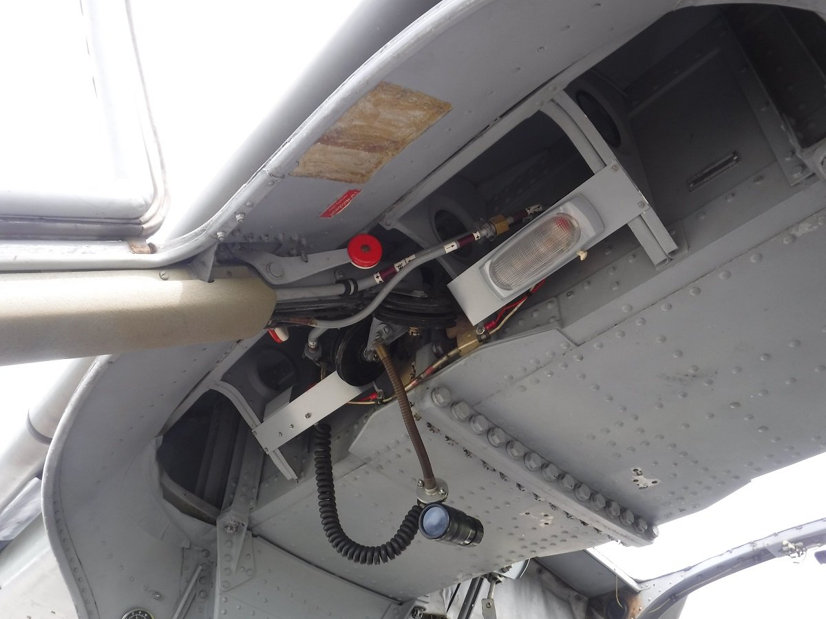 Несмотря на то, что двигатель расположен довольно высоко ( из-за длинных стоек шасси), обслуживание не представляет особых проблем. Левая и правая половинки верхней части капота открываются вверх на рояльных петлях и фиксируются шестом-подставкой. Закрываются легко, каждая на пару замков с натяжителем – никаких дзусов, а тем более винтов и саморезов, которыми нас так достают современные балалайки. Нижняя часть капота вообще откидывается на петлях вниз-вперёд, освобождая доступ к низу мотора. Гениально простое и удобное решение