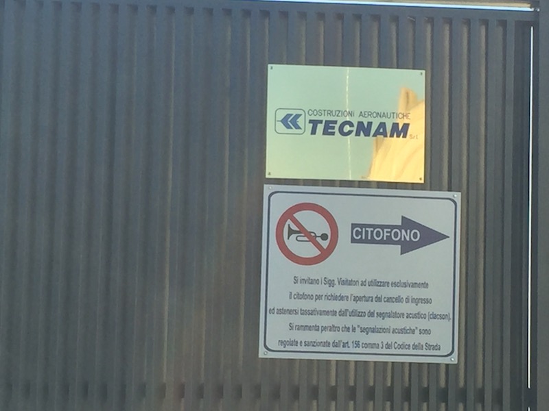 К черту климат-контроль в номере, окно, где через крыши домиков видны предгорья, открыть и спать! Вкусный воздух Италии! Назавтра в 9.00 выезжаем на завод. Удивлен отсутствием светофоров и вместе с этим, фактически отсутствие стояния в пробках. Подъехали к автоматическим воротам с табличкой “не дуди” и отдельной полированной с надписью СОNSTRUZIONI AERONAUTICHE TECNAM S.r.l.