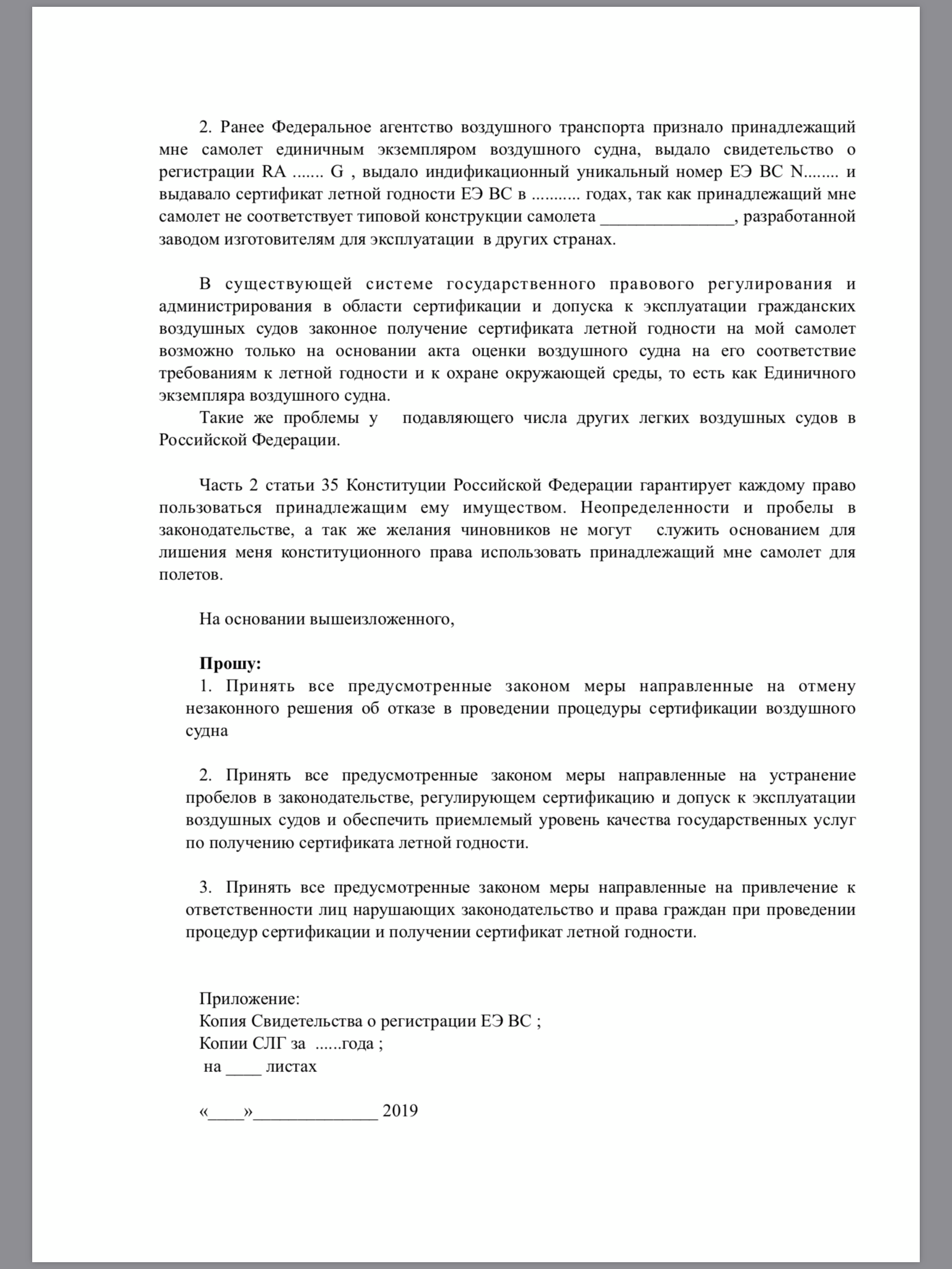 Прошу Вас разъяснить, со ссылками на действующие нормативно-правовые акты Российской Федерации, какие действия я должна предпринять, чтобы получить (повторно) Сертификаты летной годности (далее – СЛГ) на следующие воздушные суда (далее – ВС), которые имеются у меня в собственности: