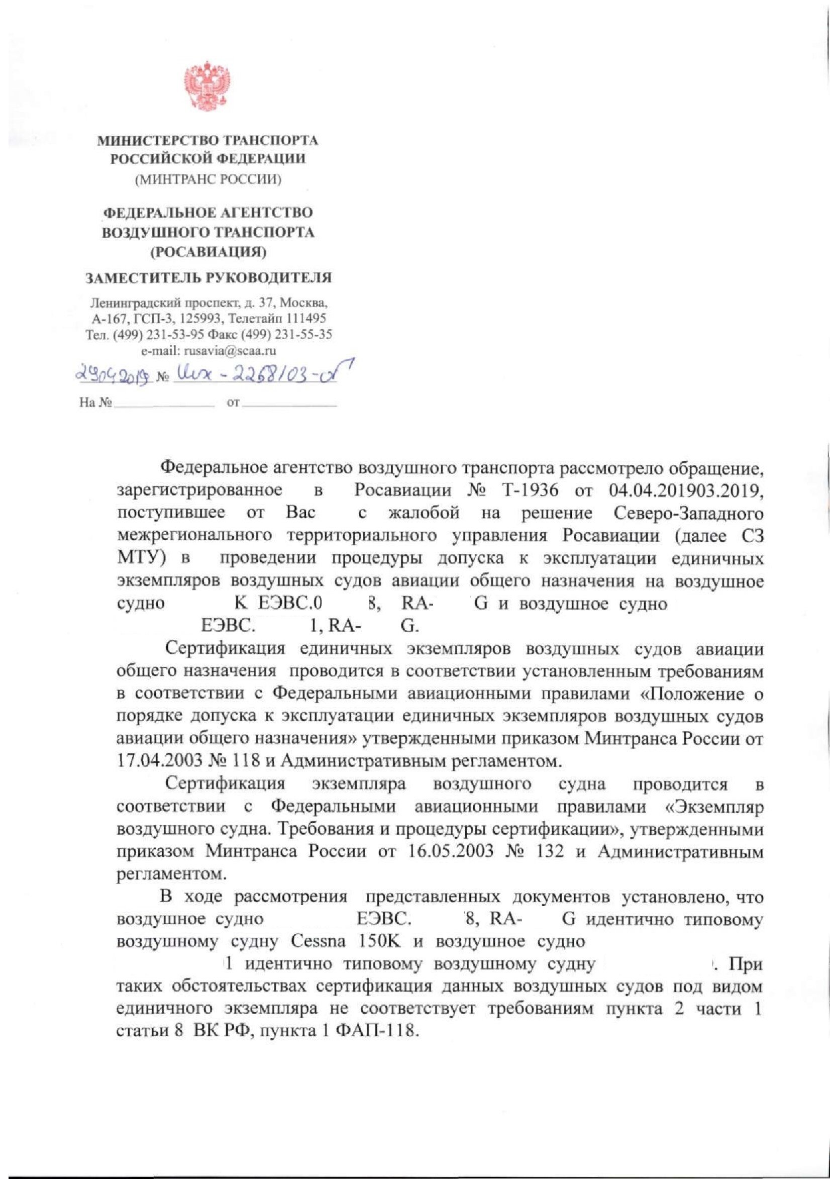 При моем обращении в Северо-Западное МТУ Росавиации, мне в устной форме было заявлено, что получить СЛГ на мои вышеуказанные самолеты у меня не получится, и мне будет отказано в выдаче СЛГ, т.к. дынные самолеты имеют иностранный сертификат типа. Как было указано выше, самолеты уже получали СЛГ в статусе ЕЭВС, законодательная база, на сколько мне известно, не менялась.