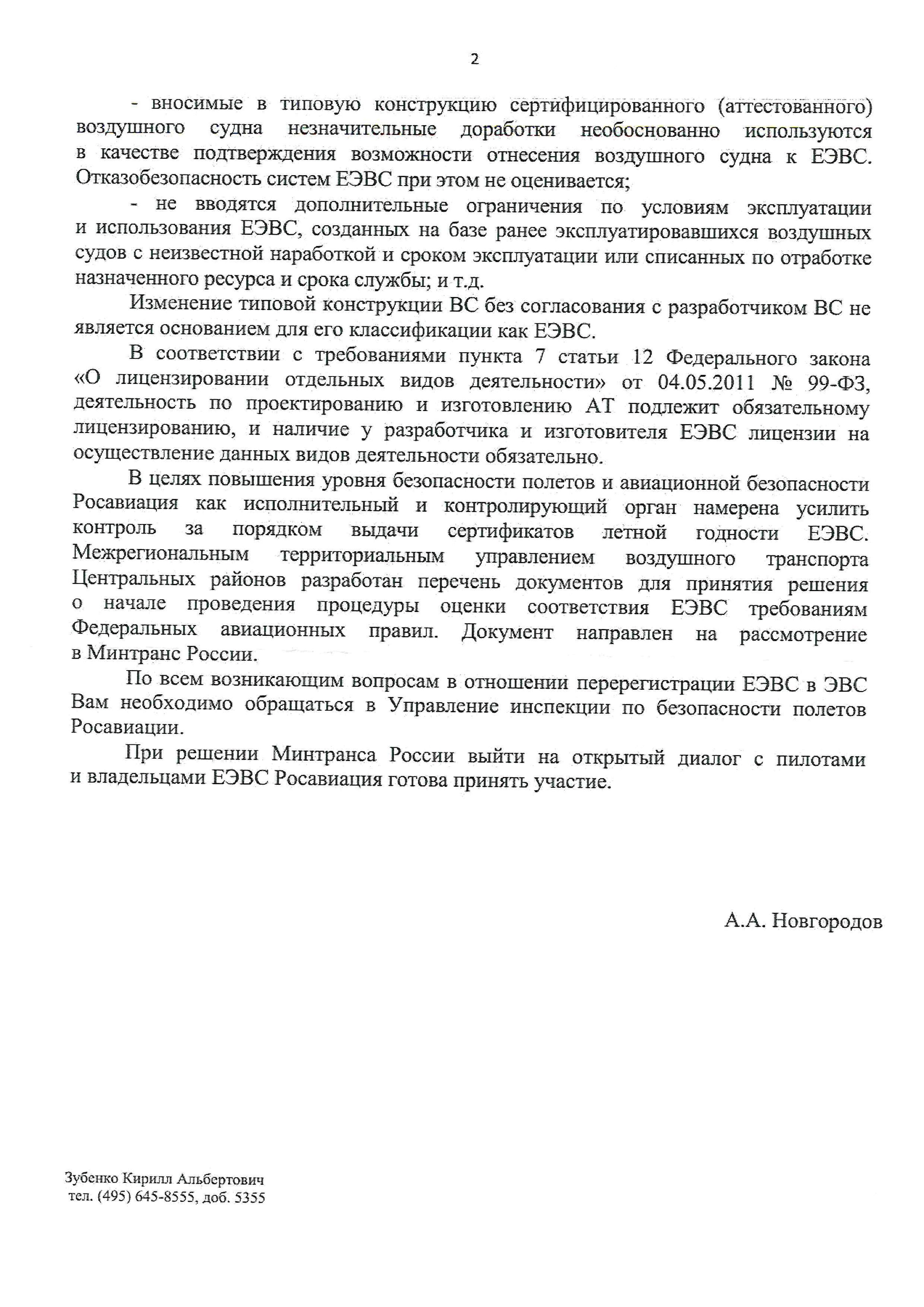 Надо было еще приложить "комплексное заключение (Аттестат о годности к эксплуатации)". Важная бумага. Чтобы у них не возникало никаких сомнений, что ВС признано Росавиацией, как ЕЭВС.