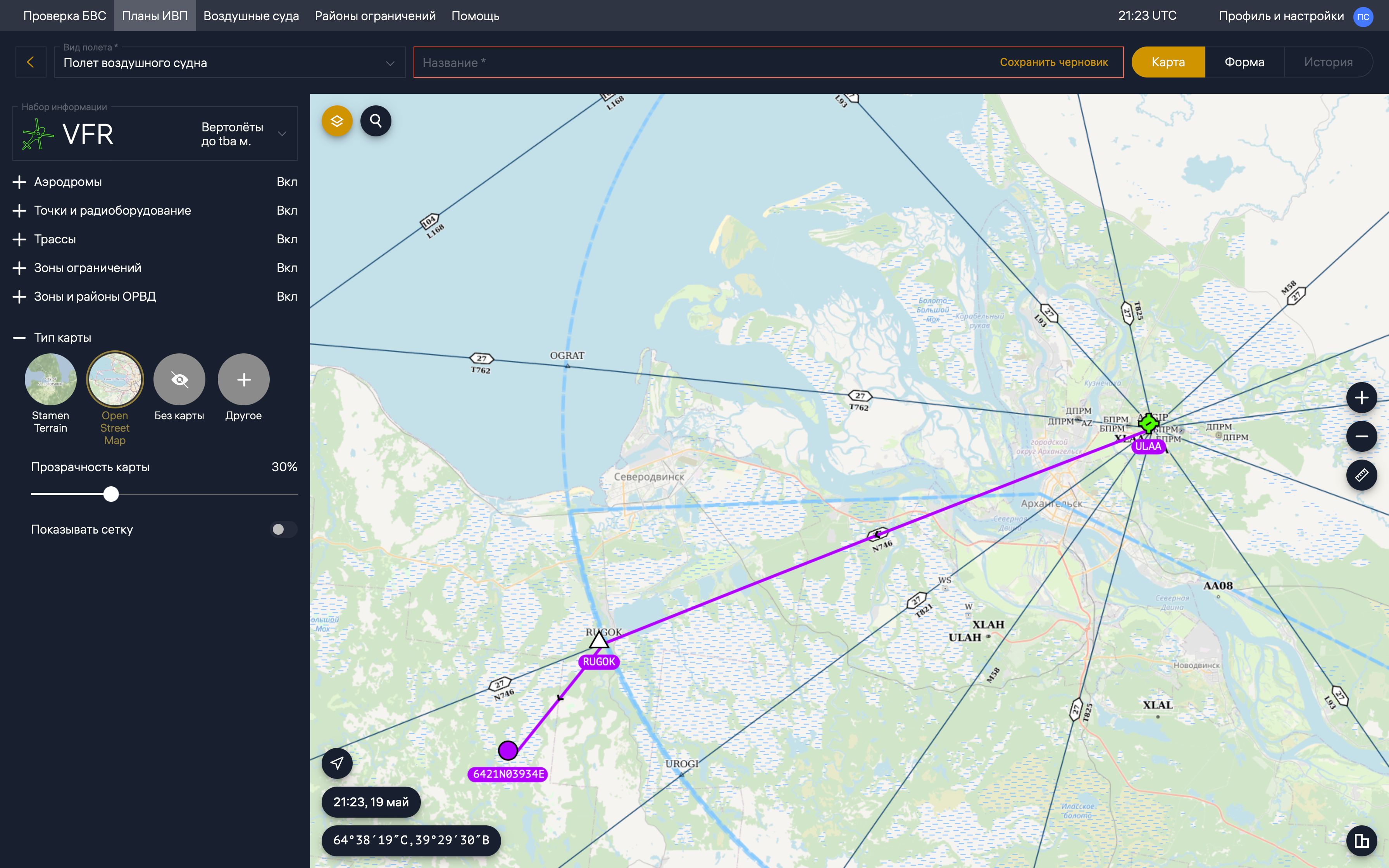 Сайт для создания полетных планов. https://fpln.ru