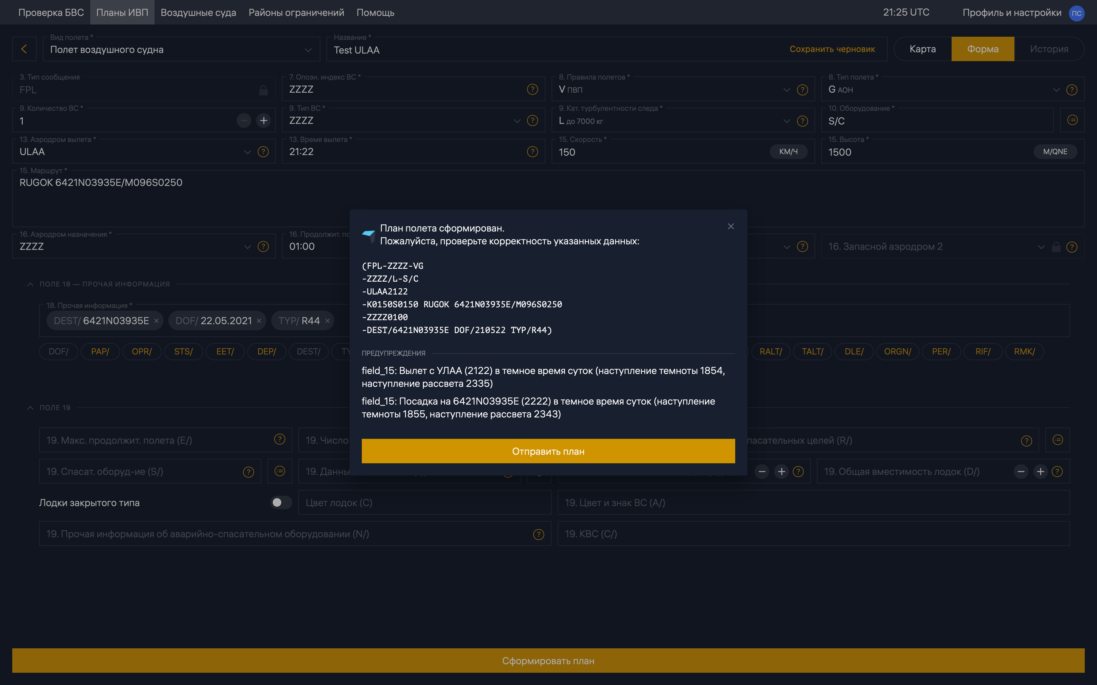Ваш ответ означает, что если я отключил ВТ на fpln, то все оставшиеся точки видимы нужному мне сектору ОВД? Я выше приводил примеры, которые говорят об обратном. Например SORET и DUBBO. Тут, прада, есть хорошая новость - ivprf их не принял. Тоже выше на скрине. Но лучше бы на fpln.ru их можно было бы отключить.uuee писал(а): ↑18 май 2021, 11:57 Выбор точек "от БАЛДЫ" приводи к распределению вашего плана в другой сектор ОВД, которому вы совсем не интересны, а тот объект которому вы хотите передать свой план информации не получает. Так например вы выбрали точку, которая принадлежит ВТ, а эта ВТ находится в зоне РЦ и ваш план т.о. попадает(распределяется) в РЦ. Поэтому хорошо, что есть такая программа, которая фильтрует такие маршруты.