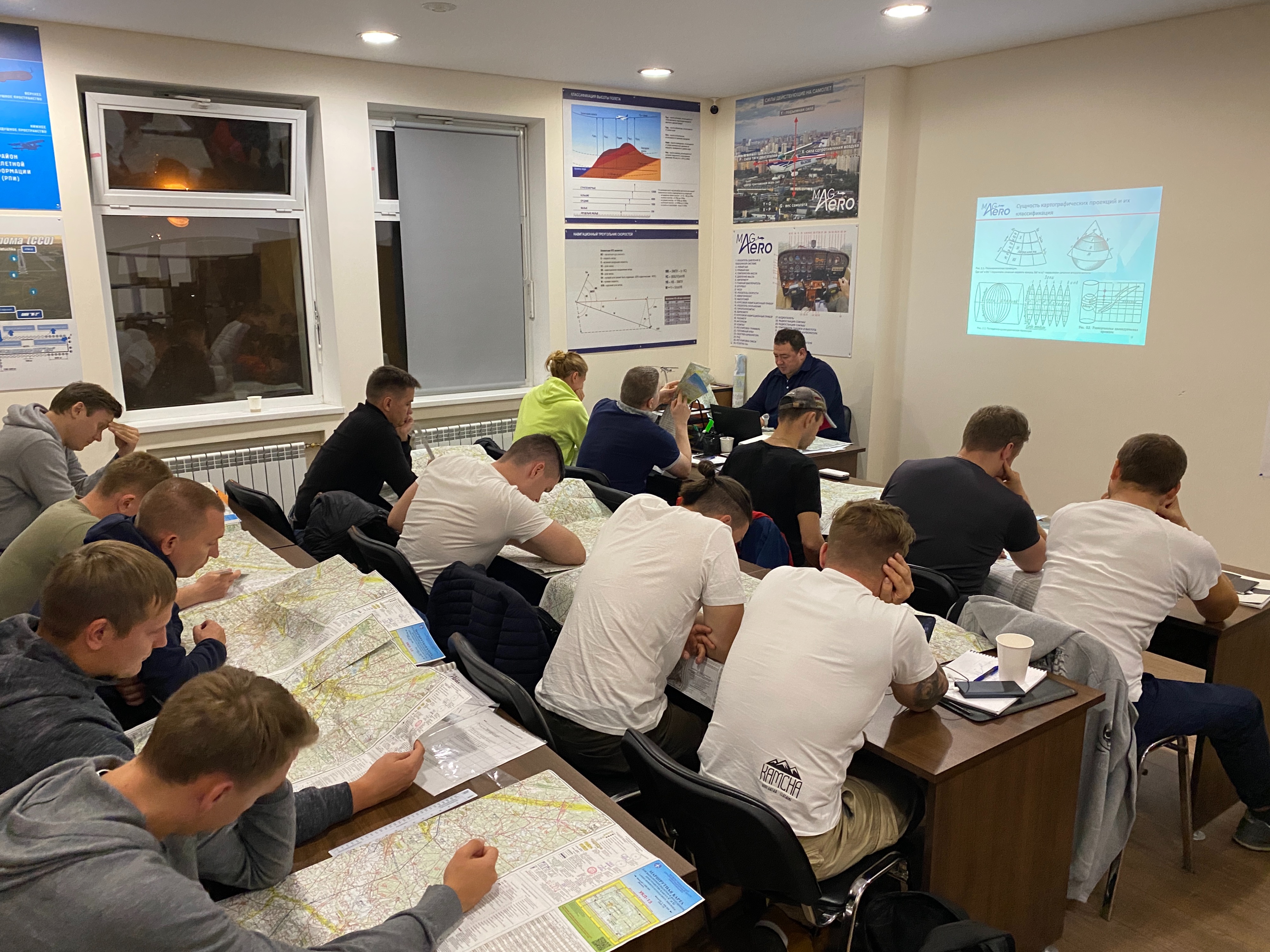 установили двигатель Lycoming 320 - в рамках прохождения теории, например - общие знания по воздушным судам, очень важно рассматривать техническую часть на примерах, близко рассмотреть, покрутить в руках приборы. Помимо этого, в общей зоне нашего класса есть кофейная зона - слушатели в перерывах всегда могут обсудить занятие за чашкой горячего напитка.