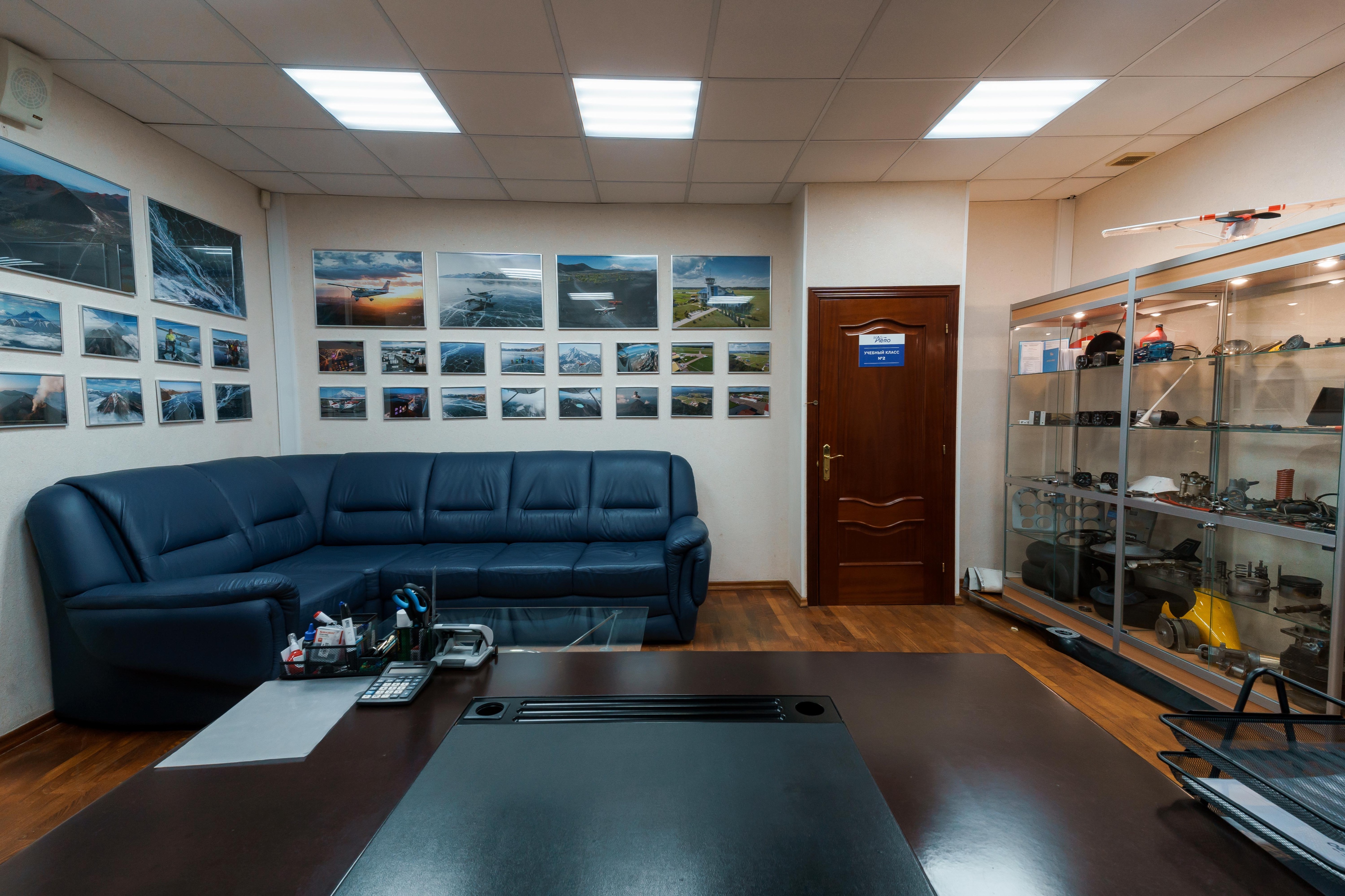 В общей зоне мы сделали небольшой авиа-музей с наглядным примером различных приборов от Cessna 172, а также установили двигатель Lycoming 320 - в рамках прохождения теории, например - общие знания по воздушным судам, очень важно рассматривать техническую часть на примерах, близко рассмотреть, покрутить в руках приборы. Помимо этого, в общей зоне нашего класса есть кофейная зона - слушатели в перерывах всегда могут обсудить занятие за чашкой горячего напитка.