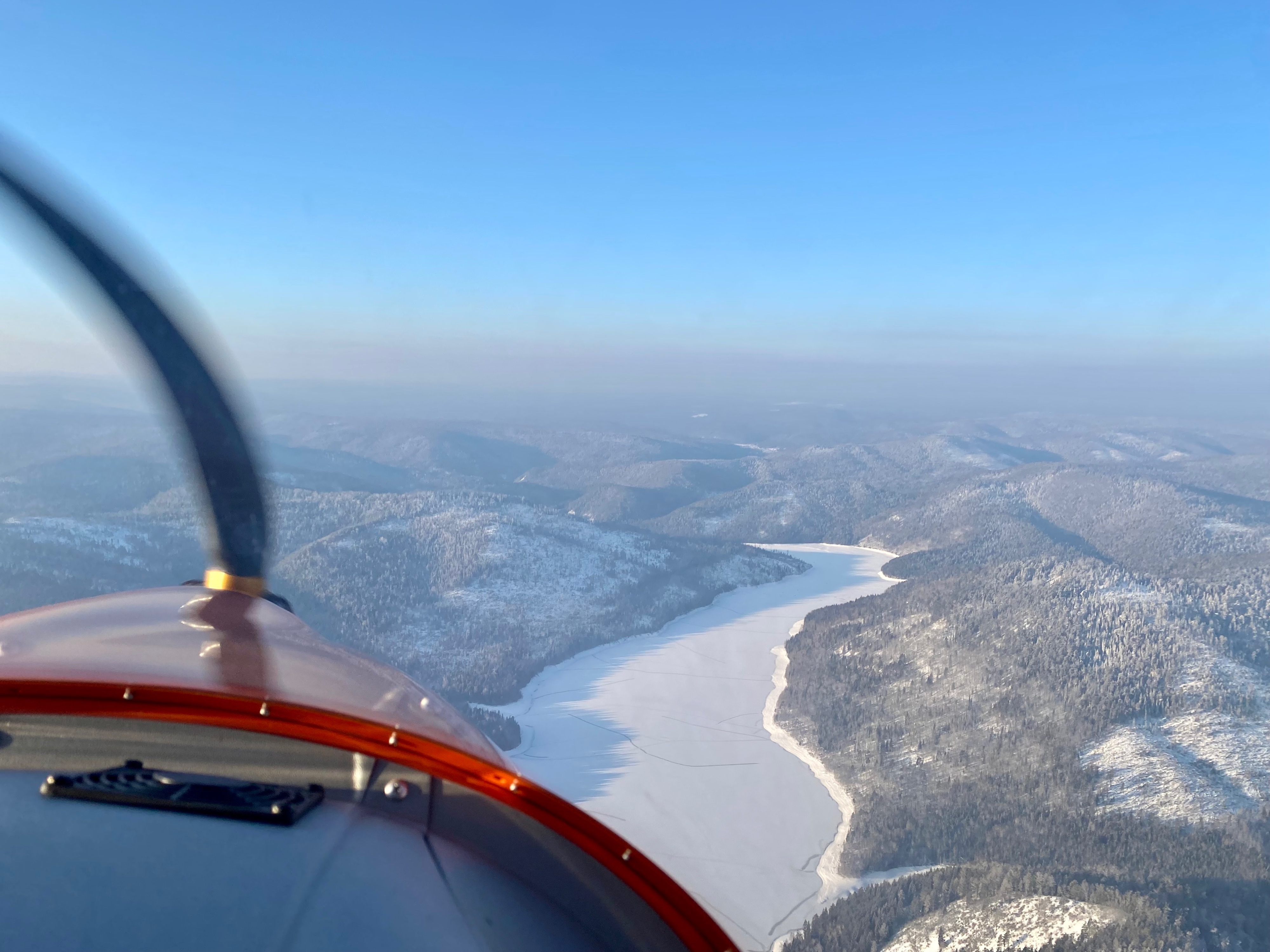Вчера сибирская погодка подарила превосходный лётный день. QNH 1034, температура за бортом на высоте 1000м. -18 градусов , правда юго-западный ветерок на этой высоте был приличный-40-45 км/ч. Решили вдвоём с товарищем смотаться на нашем Рыжике по красивому горно-речному маршруту до соседнего города Назарово. Заправили 90л. АИ-95. Наш маршрут пролегал над красивыми зимними гористыми берегами Енисея, с выходом на всё ещё, не смотря на середину декабря, свободное от льда (глобальное потепление?) красноярское море в районе ГЭС. Заливы водохранилища, однако уже были белыми от снега лежащего на ледяном покрове, интересно прочен-ли он для приёма на свою ровную поверхность полутонны веса;)? Шли мы на 950-1200 метров по QNH. В кабине настолько тепло, что иногда я прикрывал заслонку тоннеля от двух радиаторов под капотом и излишки горячего воздуха улетали под фюзеляж, согревая Сибирское небо. Атмосфера, несмотря на горный рельеф была совершенно спокойной и с учётом встречного ветра со скорость 40-45 км/ч мы установили режим 5000-5200 оборотов в минуту, приборная скорость при этом составила 185-204 км/ч. Винт на Рыжике-французский DUC регулируемого на земле шага. Вскоре после «бескрайнего моря тайги» к радости любого пилота однодвигательнго сухопутного появились первые большие поля. Подошли к Краснополянску (Красная поляна на картах), но в моем детстве эта замечательная русская деревня звучала именно как Краснополянск (чем мы хуже Красноярска:)? Здесь прошли мои самые яркие месяцы школьных каникул! Мотоцикл «Восход-2М», заправленный слитым с ГАЗ-53 у дяди Гени банкой бензина предварительно размешанного с темно-синим маслом(не помню уже его названия-автол?). Помню незабываемые ощущения от быстрой езды с ветерком по полевым выкатанным в черноземе дорогам-как по немецкому автобану-до того мягко и плавно! Ездил с отцом на импровизированный полевой аэродром за околицей села, куда каждое лето из районного центра прилетал на АХР желтобокий Ан-2. Летчики, которых я считал самыми крутыми и счастливыми людьми на свете (молоденький второй и невысокого роста сухопарый командир-постарше) разрешали посидеть в кабине, куда нужно было протиснуться мимо бака для химии, с непередаваемым «ароматом»! Детство.. Вираж над домами деда Саши-фронтовика прошедшего финскую и ВОВ и дяди Гени (по-моему даже гараж где стоял регулярно угоняемый мной чёрный «Восход») сохранился! Прошли над замечательным аэропортом «Назарово» с асфальтовой полосой 1200м. в СССР он принимал Як-40 летавший два рейса каждый день из Красноярска (расстояние по прямой 145км.) билет стоил 8 рублей. Теперь это посадочная площадка, о которой заботится и поддерживает ее в отличном состоянии местный частный пилот. Даже полуразрушенное здание аэровокзала восстановили! Обидно до боли, что государство никак не помогает, а даже наоборот мешает таким людям. В ангарах живут пара Аэропрактов-22 и один R-44. Летом можно всегда заправиться и переночевать. Зимой ребята летают с укатанной для лыжного шасси полосы. Мы на колёсах и поэтому, к сожалению не можем подсесть на этот гостеприимный аэродром. Облетели Назарово, сверху в центре города хорошо был узнаваем ДК «Угольщик» от которого и ходил в аэропорт желтый ЛИАЗ-677 (с бутылочным звуком под полом). Слетали на угольный разрез, где в СССР работал самый большой в мире шагающий экскаватор(мой местн