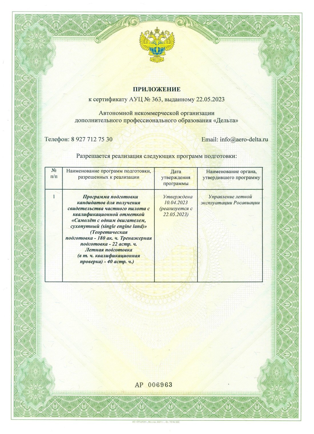Сертификат АУЦ №363 от 22.05.2023