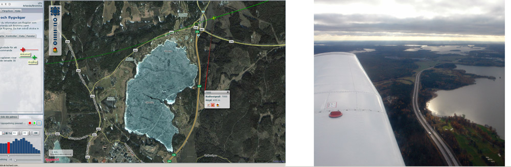 Все полёты вокруг Стокгольма можно посмотреть, если летал с транспондером, с задержкой в 5 часов. VFR устанавливается на 7000 по умолчанию, что немного мешает найти "себя", но если знаешь время вылета или пролёта, то не сложно, да и не так нас там много летает одновременно. Вчерашний свой полёт вот посмотрел и нашёл место с которого фотку сделал, прилагаю для сравнения. Программа в основном создана для старушек, желающих пожаловаться на пролетающих около их дома, для этого есть функция- размещение собственного домика на карте. Там всё по шведски, но если будет интерес- обращайтесь, переведу и поясню как пользоваться! очень прикольно вечером посмотреть где летал! :)