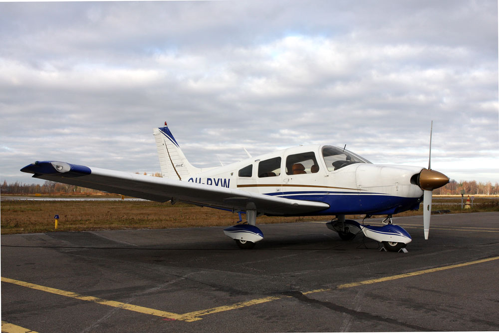 Пока подогревали французскую цесны, пофотографировал самолеты неподалеку (литовский Ан-2 был вне радиуса 50 метров, т.е.далеко, в кадр не попал). PA-28 Cherokee Archer II: