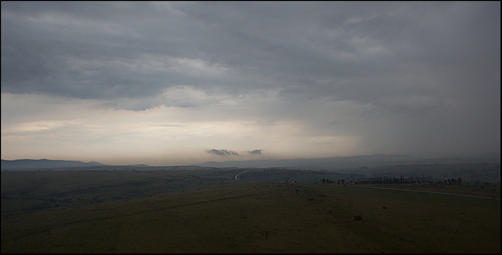 Далее начинается горный хребет. Невысокий, всего 2.5 км или около, но в горах гроза и дождь.. Пролетев, попадаю впервые за 5 дней на высоту 200 метров над уровнем моря - обычно от 1.5 км до 3.. надоело уже сирену слушать.. Сперва встречаются туристы, пугающие жрущего носорога. Затем просто носороги, жирафы и прочая.. Затем я вижу полосу асфальта в 1800 метров.