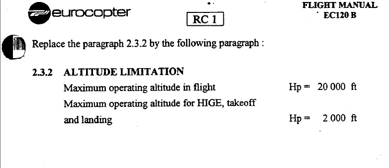Максимальная высота висения на "подушке", взлет и посадка (HIGE) - 2000 футов (!?). У меня руководство неправильное? Но я только что на нем с 6000 футов взлетал. Странное дело.