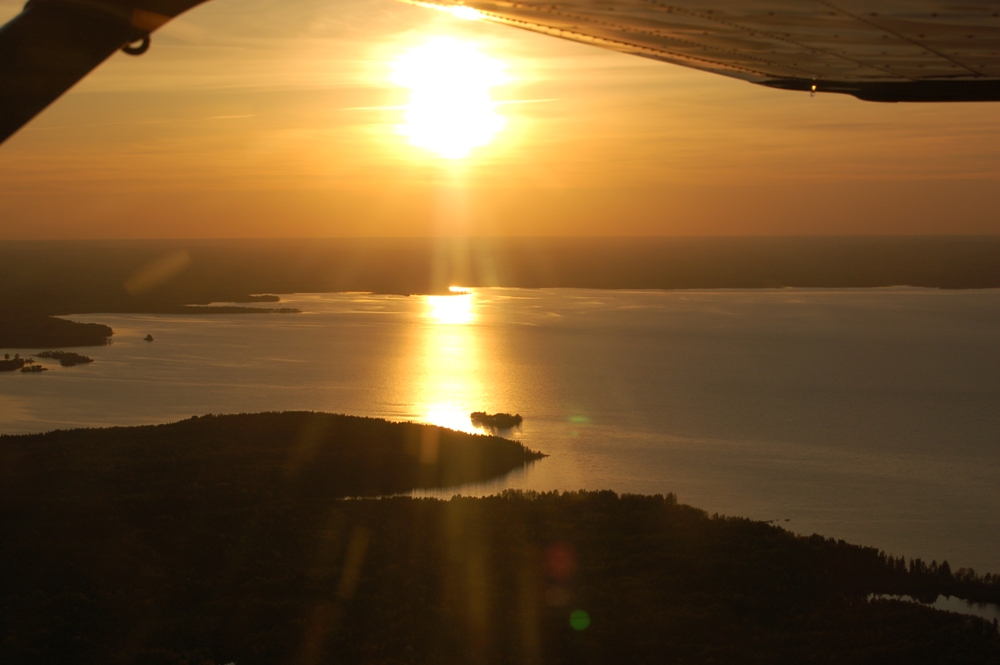 Долетев до площадки мы выполнили проход, развернулись и сели. Деревья и кусты по торцам мешали посадке, в багажнике их дожидалась бензопила. Времени было мало но комары нас подгоняли. Подъехавшие аборигены отнеслись к нам хорошо, обещали содействие тем кто пожелает (по предварительной записи) остаться на ночь. Отличное место, но фумигаторами надо запастись.