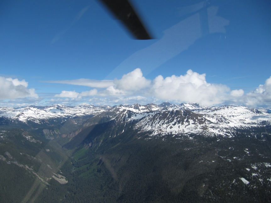 перегон вертолёта AS-355F2 через горы из Terrace в Fort Nelson. максимальные превышения чуть больше 10 000 футов. один раз садился на заправку в каком-то ущёлье.