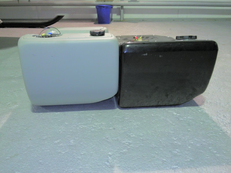 Первая - продумать вопрос обрезинивания внутренней поверхности баков или (что еще лучше) помещать внутрь резиновую емкость той же ёмкости, которая будет препятствовать разливу топлива в случае жестких посадок и возможных трещин в баках. Этот вопрос, я знаю, беспокоит и волнует многих владельцев Робинсонов. Некоторые летают с этими баками, но с болью в сердце. А иные и вовсе предпочитают возить алюминиевые канистры, как более надежное решение. Все-таки топливо находится в кабине...