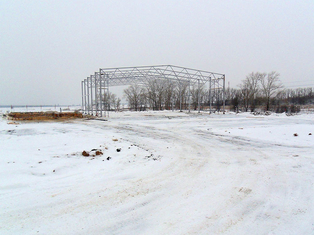 Когда я приехал на стройку в очередной раз, первое что вырвалось - вау! Моему взору предстал каркас ангара, который начал собираться. Разумеется, это еще не весь каркас - нет продольных и диагональных стяжек на стенах, нет лаг и диагоналей на крыше, но все же, можно уже воочию увидеть результат трудов. И масштаб сооружения.