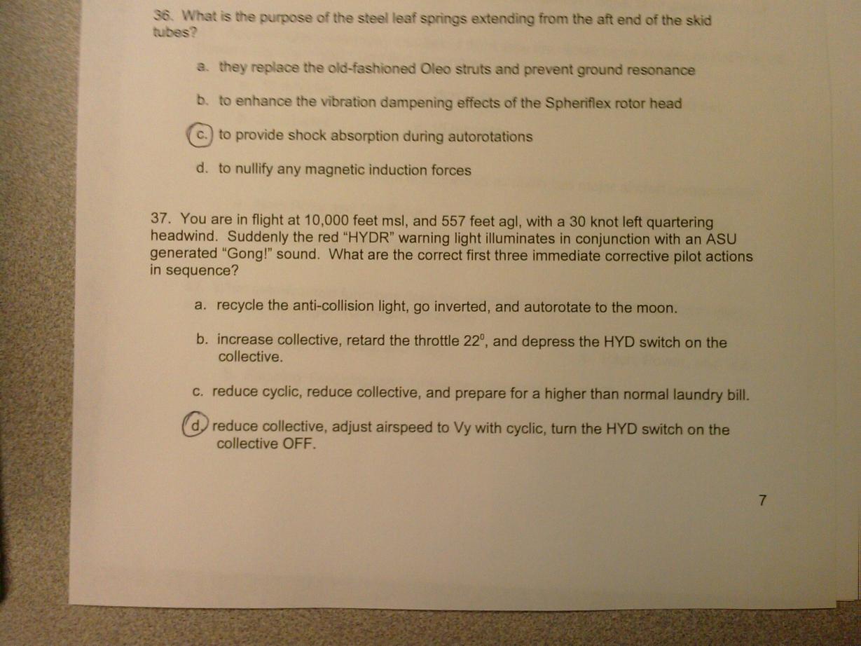 Реальный кусок из письменного теста на переобучение на EC120B в American Eurocopter, Техас
