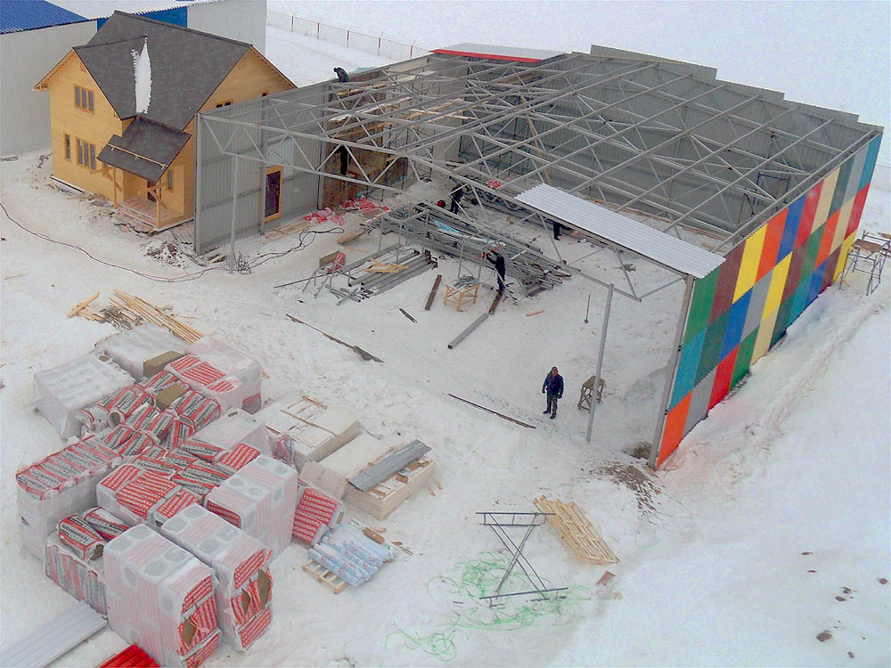 Фермы на земле ждут своих фундаментов, а работы по утеплению ангара идут полным ходом