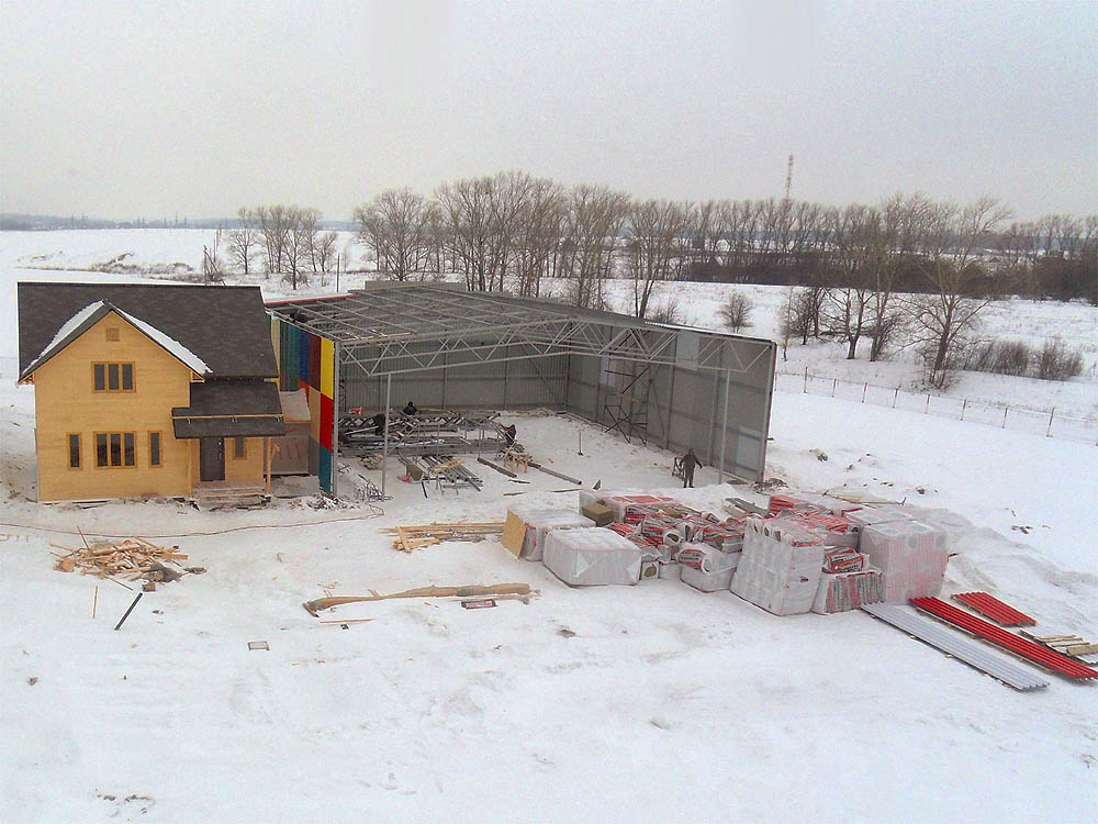 На следующей неделе на стройплощадку будет доставлен сайдинг на фасад домика, ламинат для застилки полов в него же и краска (лак) по дереву, чтобы бригада рабочих вновь вернулась и окончательно доделала домик. (Останется только сантехника и электричество, но это уже другие люди). В ангаре будут залиты фундаменты под перекрытия антресоли и арки ворот, благо морозы, похоже, закончились. Ну и работы по утеплению будут продолжаться.