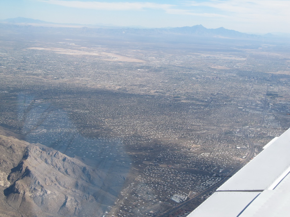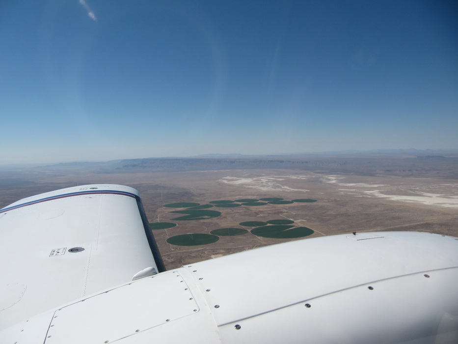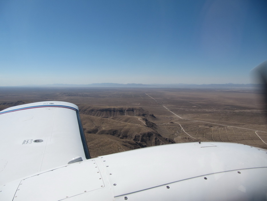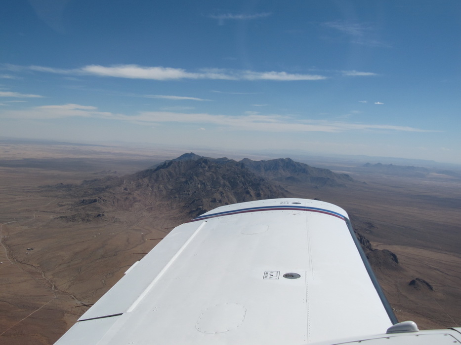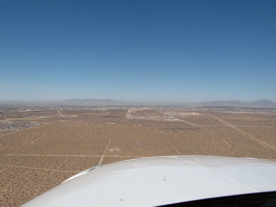 Мы загрузились в самолет и вырулили на полосу. После взлета, нам пришлось облетать Эль Пасо по кругу, против часовой стрелки с востока на запад. С северной стороны находились красивые горы, которые мы начали фотографировать. Когда запал пропал и мы успокоились, на заднем ряду возникла суматоха, через пять минут выяснилось,- Саня забыл телефон в машине… Это было печально, мы развернулись и полетели в обратном направлении. Надо было видеть лица местных дедов, когда они снова увидели самолет с русскими у себя на глиссаде! 40 минут драгоценного времени было потеряно. Телефон благополучно был найден, мы долили израсходованное топливо в баки и снова вырулили на полосу. Следующая посадка должна быть в Лас-Вегасе…