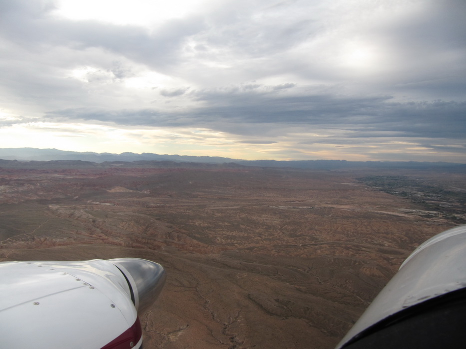 Под нами была долина реки Колорадо, мы летели практически над ней, по ней же проходила граница между штатами Аризона и Невада. Справа и слева были горные массивы с высотами более 7000 футов и мы изначально решили не лететь над ними. Полет над долиной реки был предпочтителен.