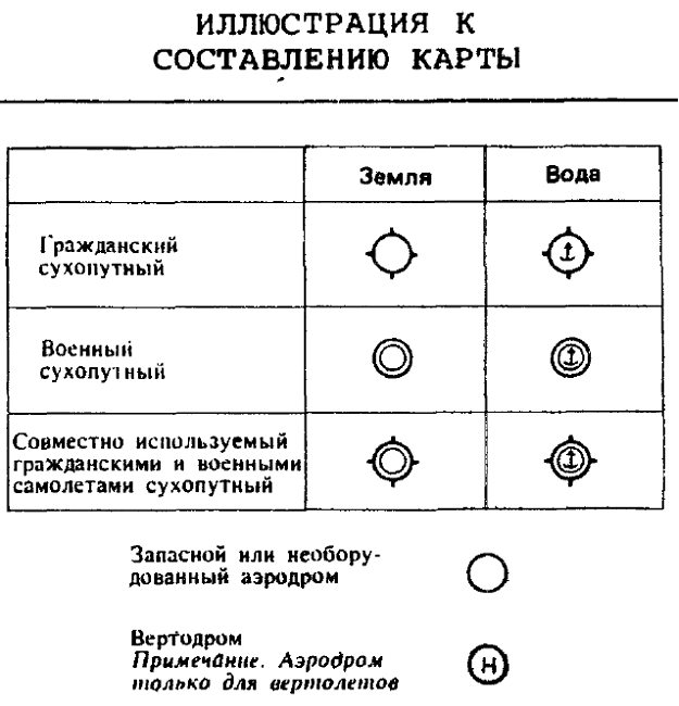 Так в виде силуэта самолета принят внемасштабный условный знак, который наносят на топографические карты разного масштаба для обозначения трех групп объектов: