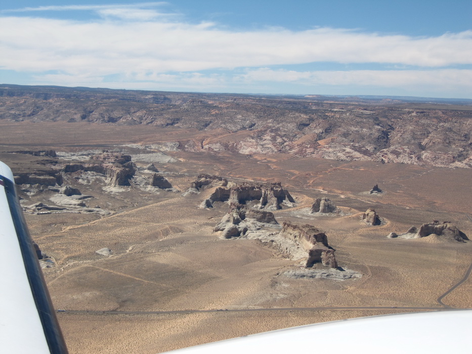 После того как, мы достаточно долго в нашем понимании пролетели по направлению к Брайс каньену, мы повернули на восток. По пути к Брайс каньену чаще всего наблюдали довольно таки высоки уступы и срезы гор. Такое ощущение, что горный хребет разрезали вдоль, а потом одну половину оставили , а другая просто исчезла. Перепады по высотам были ощутимые. Мы взяли направление на Альбукерку. Как раз в этом направлении мы должны были пролететь знаменитую долину монументов. Я не скажу, что сами монументы чем-то особенным примечательны, наверное они просто больше разрекламированы. То, что мы видели за прошедших пару дней… в общем можно брать любой кусок каньена и пиарить его.