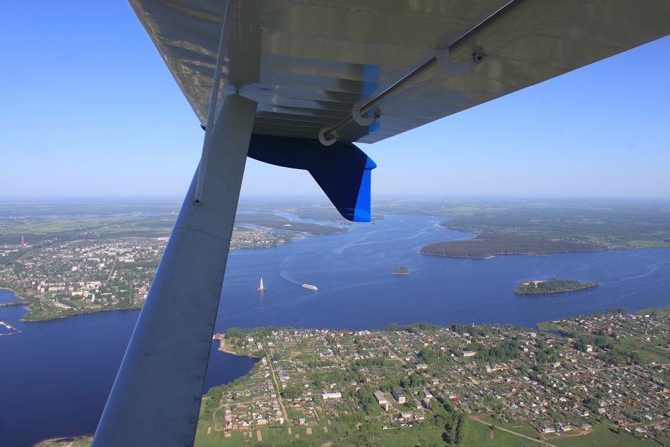 В городе Калязине среди всех достопримечательностей самая известная - колокольня Николаевского собора. Во время строительства Угличского водохранилища дома, которые можно было разобрать, перенесли на более высокие места. Монастырь и колокольня Никольского собора были затоплены. Колокольню обсыпали грунтом, чтоб она не разрушалась. Проплывающие мимо теплоходы наблюдают этот памятник, ставший символом города. Один из таких пароходов ускорил наше отбытие от колокольни. Так как я боялся, что от волны Корвет потреплет о камни.