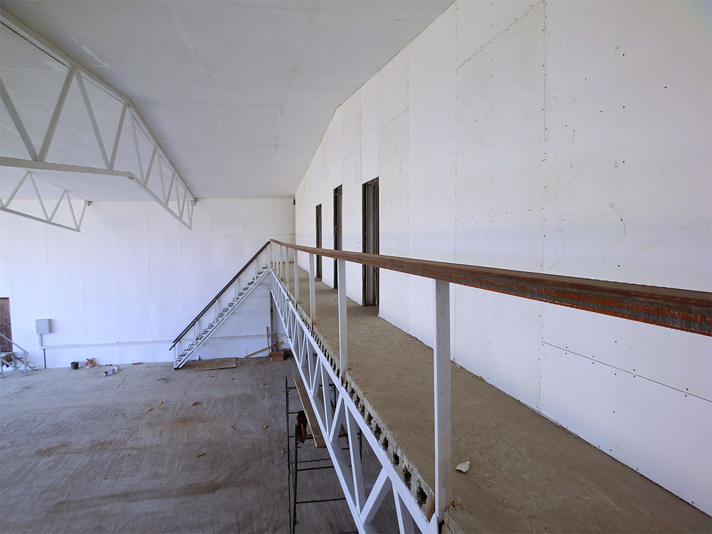 1. Приведение в порядок стен (шпатлевка швов) и внутренняя окраска здания и металлоконструкций. За отчетный период эти работы шли полным ходом, что и видно на фото. Кропотливо шпатлюются и заклеиваются серпянкой швы. Поверхность готовится к малярке.