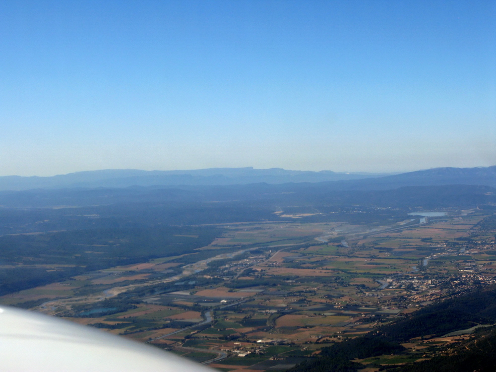 Наша умница-амфибия бодренько набирает высоту, справа и слева проплывают горные ущелья, долины, какие-то небольшие городки, пытаюсь связаться с Марселем - это уже его зона контроля, чтобы спросить, активны ли зоны ограничения полетов впереди по курсу - там явно какие-то воинские части. Марсель не отвечает, горы и радио просто не пробивается (как я и думал), поэтому мы попросту облетаем эти зоны, и вся недолга. Погода идеальная, светит солнце, облаков нет вообще. На фотках получаются блики (от нашей, так сложно добытой карты), стараюсь как-то прикрывать объектив. Уже летим больше 2х часов, время пролетело незаметно, такие красоты кругом. Настраиваю Ницу, пытаюсь вызвать - пока далеко, не отвечает, хотя уже подходим к зоне контроля.