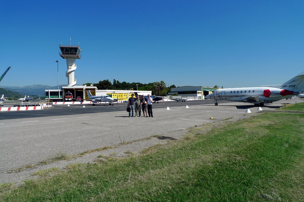 Блин, Хитроу какой-то для general и business aviation. Начинаем гаситься, чтобы не уйти на 2й круг, пайпер впереди садится и шустро сваливает по рулежке, надо тоже на полосе не застревать в таком-то бедламе. И вот, нам разрешена посадка, ниже ниже ниже, скоростное касание, покатились, скорость падает и мы начинаем тормозить, слева набегает рулежка, вышка командует освобождать влево, сруливаем влево и получаем инструкцию перейти на частоту руления. Уффффф. Мы сделали это ! Мы в Каннах !