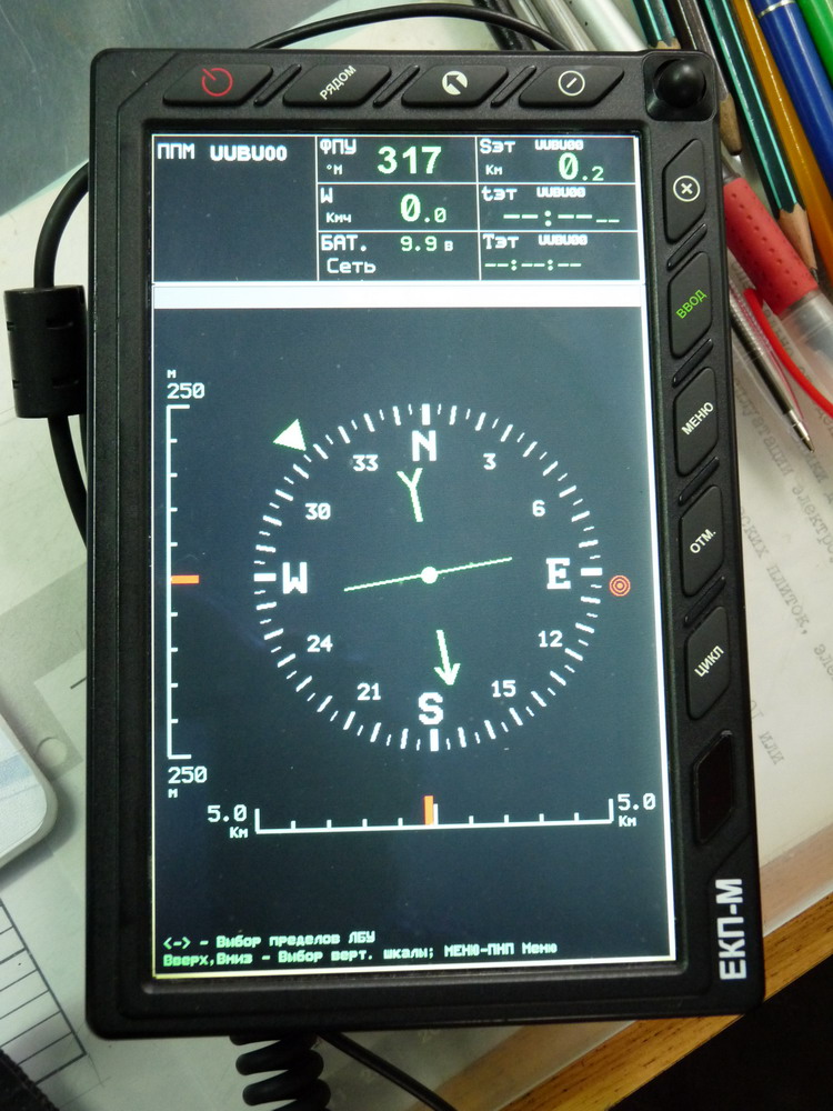 Сегодня мне принесли для ознакомления и составления отзыва навигационный планшет ЕКП-М. Это по сути локализованная версия авиационного навигатора AvMap EKP-IV http://www.avmap.ru/products/aero/ekp_iv-4/introduction . У него руссифицированный софт и кнопки на панели. К тому же устройство имеет встроенные приемники ГЛОНАСС и GPS.