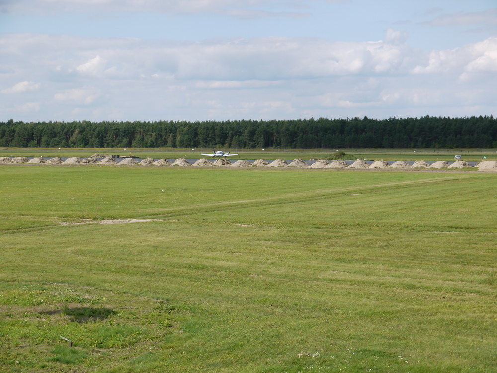 Прилетаем в Варшаву, берем такси и едем в Модлин. Переговоры с охраной были на удивление короткими. Буквально через 10 минут за нами подьехала машина и отвезла к будочке МДП. Ситуация на аэродроме не изменилась, все та же стройка. ВПП выкладывают третьим слоем асфальта . Самолет одиноко стоит на краю грунтовой ВПП . Осматриваю,- вроде все впорядке. Открываю салон, залезаю и включаю питание- абсолютный ноль. Ну это уже мой косяк, забыл отключить питание интеркома, да и вообще надо было отсоединить аккумулятор для длительной стоянки. Начинаем договариваться с запуском двигателя,- ничего нет и в помине... Предлагают отвезти аккумулятор на зарядку к вертолетчикам в ангар, что и делаем. Ждем полтора часа... Пока идет время занимаюсь самолетом, проверяю все. Расплачиваюсь за стоянку. Проще оказалось оплатить стоянку за месяц, чем платить подневку. Отдали около 114евро.