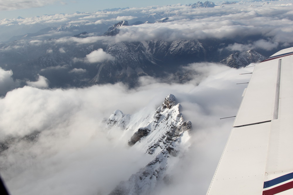 Минут через 20 я дошел до траверза Бресция и повернул на север. Передо мною сразу выросли горы, надо было набирать высоту и немедленно. Не очень большой разрыв в облаках как раз позволял это сделать. Я доложил что набираю 6500 и пошел в верх. Места между нами и облаками оставалось уже не много и я ускорил подьем. Передо мной был толстый слой облачности в котором скрывались скалистые горы окружающие озеро Градо с западной стороны. Еще пару минут и я понял, что на 6500 я не поднимусь выше облаков, запрашиваюсь на набор 8500 и не дожидаясь ответа перекладываю рули в еще более крутой набор, надо успеть до того как упрусь в облака. Ответ диспетчера меня просто сбил с ног