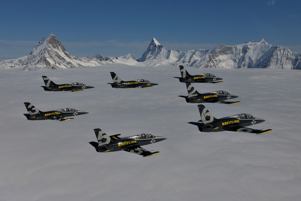 - семёрка L-39C Albatros, пилотажная группа «Breitling Jet Team».