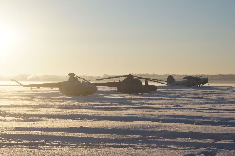 Полосу в здесь не только укатывают ратраком, но и подметают Ми-2 перед прилетом гостей