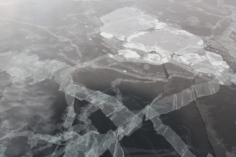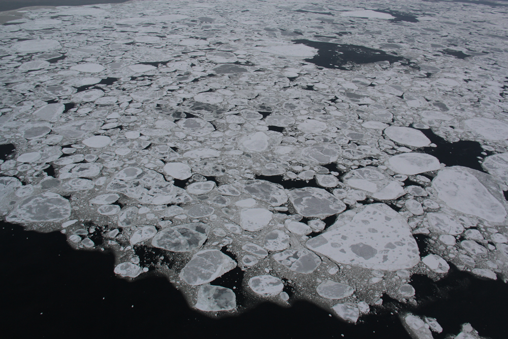 За два дня между полетами льдины, найденные и замаркированные ледовой разведкой, разбило на довольно мелкие и отнесло ветром на 20 км.