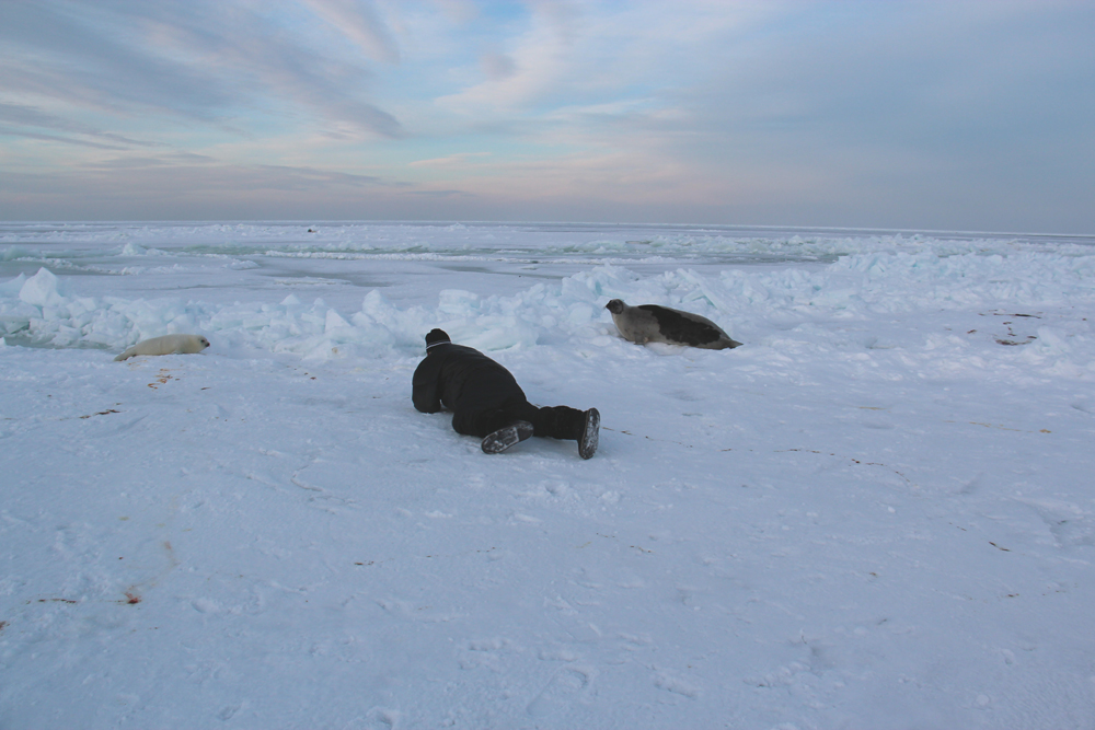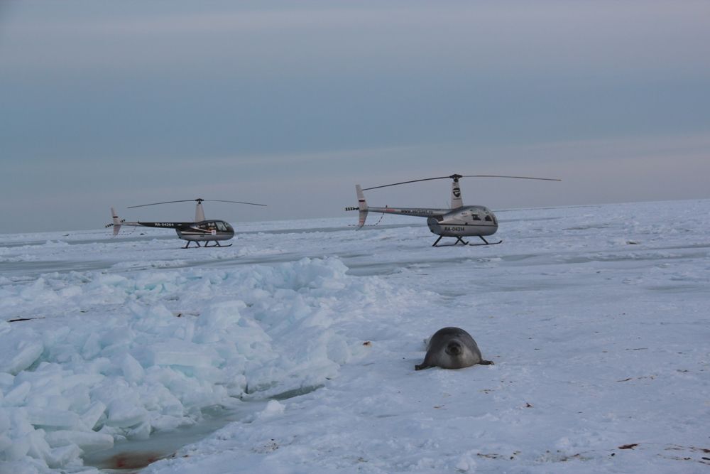 Отвечаю :) Олег Продан ежегодно с 1999 г организует полеты на льдину для туристов. Каждый год примерно в это время года Гренландский тюлень приходит в одно и то же место, чтобы родить единственного детеныша и выкармливать его на льдине в течение последующих двух недель.