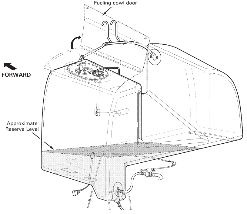 то можно обратить внимание на то, что (в положении покоя) поплавок системы индикации топлива будет в своём нижнем ("нулевом") положении когда уровень топлива ещё немного выше того при котором срабатывает поплавок индикации LOW FUEL ...
