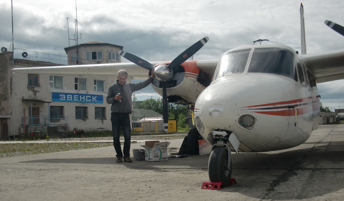 Один из них - директор аэропорта Северо-Эвенск. Встретил нас как родных, поселил в гостинице "Полиметалла" -1500 руб. с завтраком и горячкй водой. На следующий день дал ключи от проходной и "пилотской" - уютной хибарки прямо на территории аэродрома. Там мы ещё пару дней и жили. Было очень удобно заниматься ремонтом не отходя далеко от стола :lol: