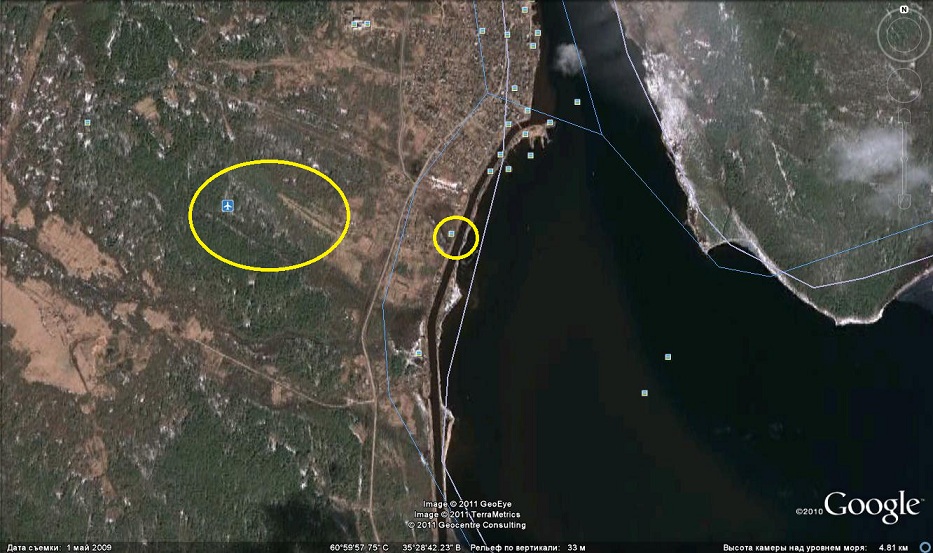 Жень, на картинке вроде полоса. Может заброшена? Но снимок в кружёчке с высоты сделан. Ничего не знаешь про это место?