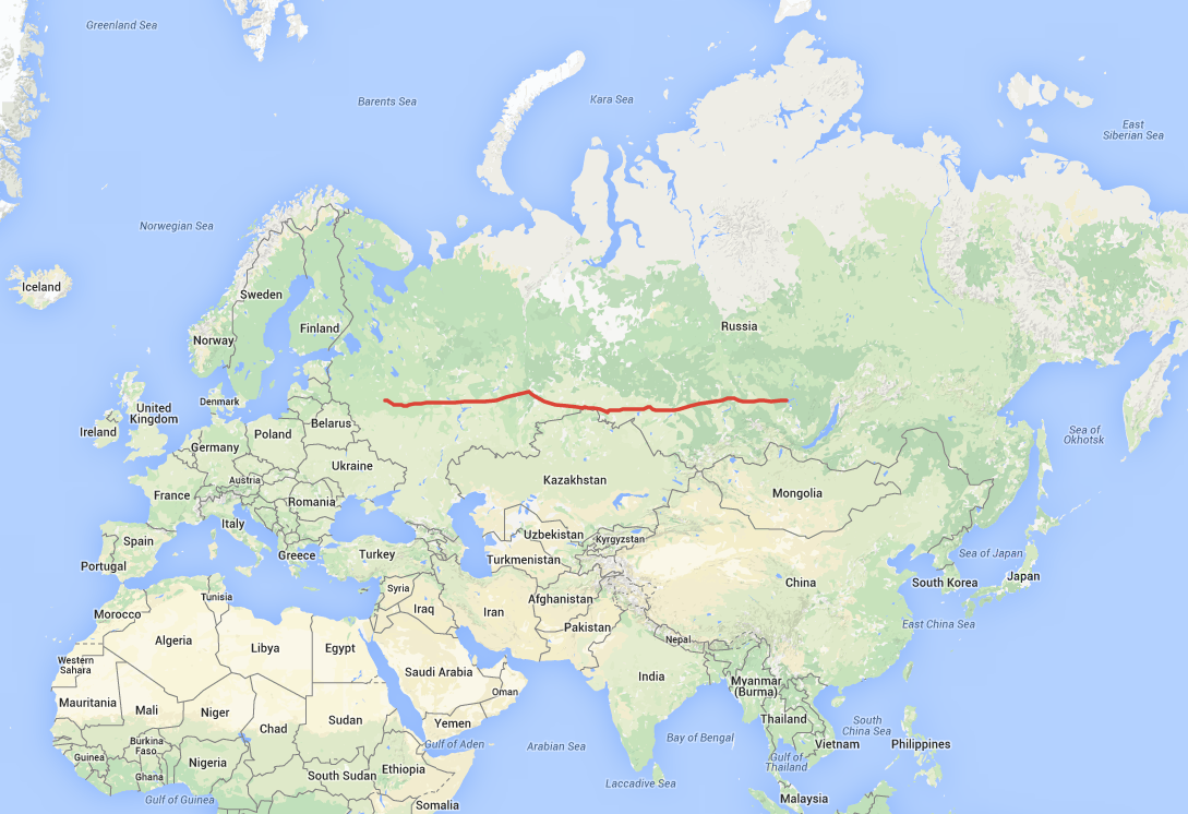 Братск ... пройдено около 4 240 км ... за примерно 27 часов 20 минут (хотя время на SPOT считать дело неблагодарное) ...