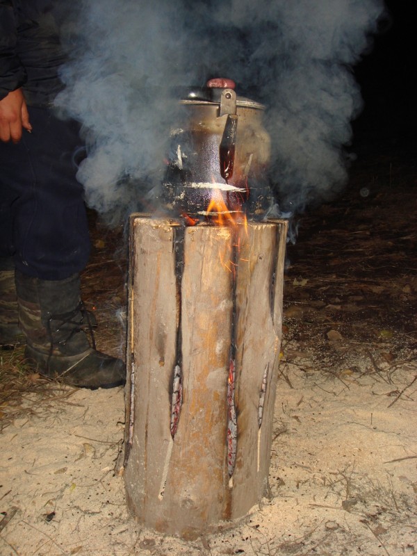 для этого нужен по возможности сухой отрезок дерева, пила что бы сделать пропилы, береста для разжига