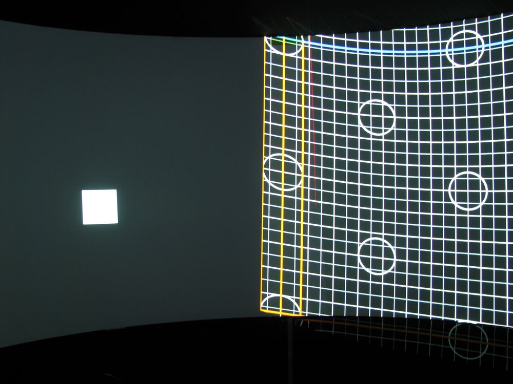 Это настройка геометрии изображений, Брент (американский специалист) разметил зоны с помощью рулетки, и по лазерному уровню выставил идеальные вертикали.
