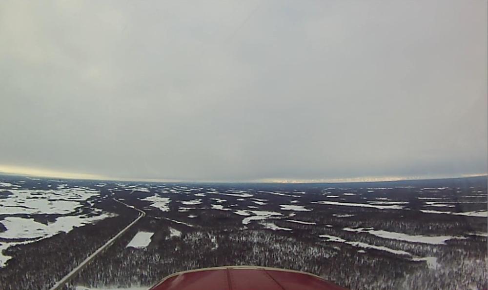 на обратном пути практиковали посадки на реку ... сначала провели разведку снежного покрова ... а потом садились в свои следы ...