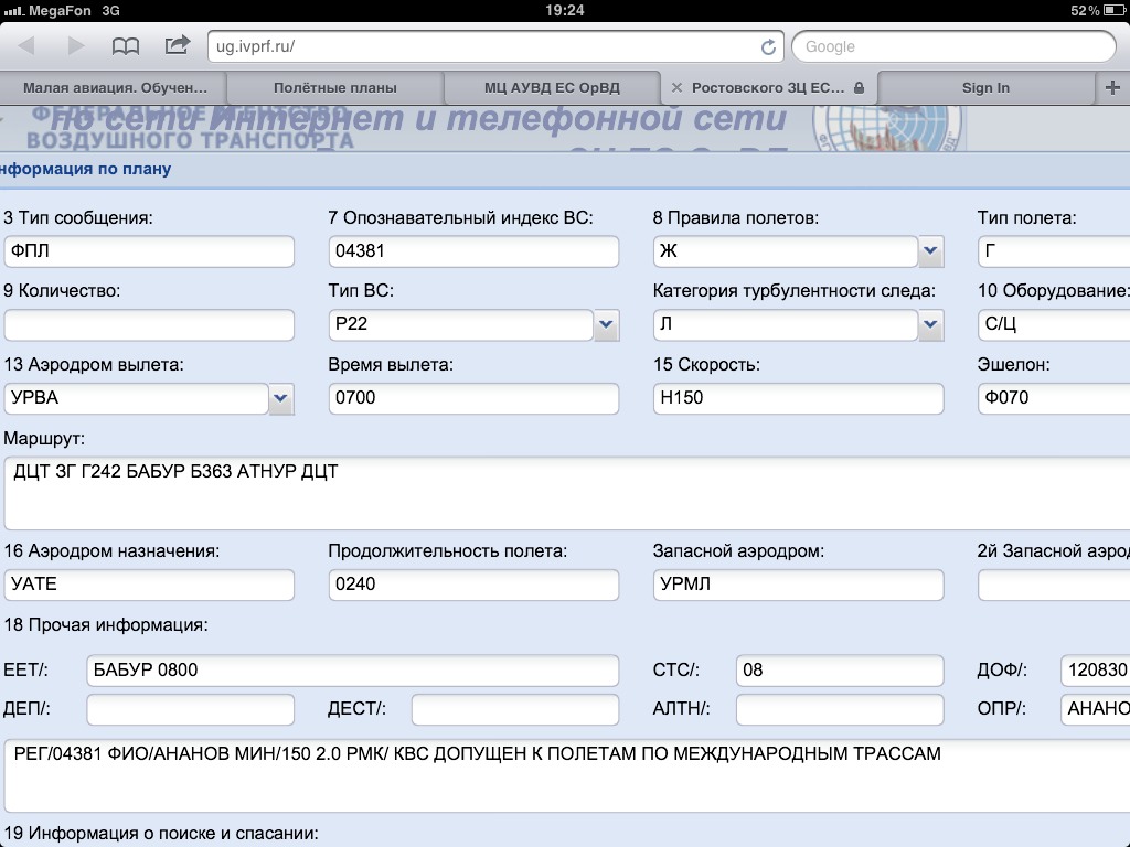 Пересечение южной госграницы РФ – от Астрахани в Актау (Казахстан), чтобы дальше через Баку в Тегеран – удалось успешно. Правда, со второй попытки, да и то – на бумаге. То есть, поданный фл-план через точку BABUR на эшелоне 70 был утверждён ГЦ в течение нескольких часов без каких-либо вопросов. Приятно пообщался с дежурным ГЦ Шеломинцевым. Спасибо ему. Прилагаю копию своего плана и куска карты.