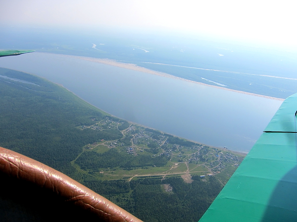 Через 15 минут лету от Бахты, наблюдаем внизу большое село.