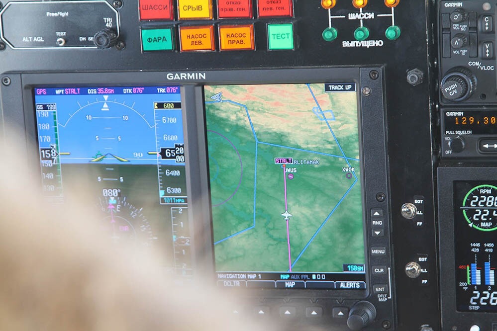 И вот мы пересекаем символичную границу путешествий, Урал. Маршрут Стерлитамак - Белорецк - Челябинск мне хорошо знаком и здесь в случае ухудшения погоды я чувствовал бы себя уверенней всего. В Белорецке хоть и заброшенная, но есть полоса и справа по маршруту Магнитогорск тоже может быть хорошим запасным АД. Ветер продолжает нам активно помогать и мы валим со скоростью 210 узлов. Левый концевой бак уже привычно плохо отдает топливо, но его 80 литров нам особых проблем не доставляют на фоне общей нашей заправки 730 литров.