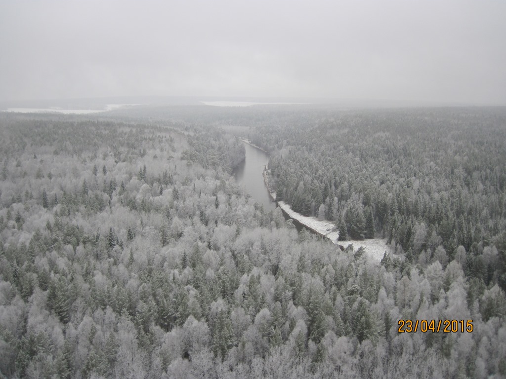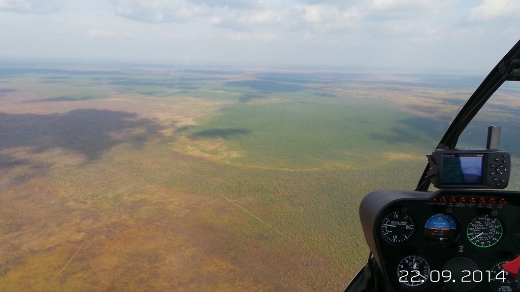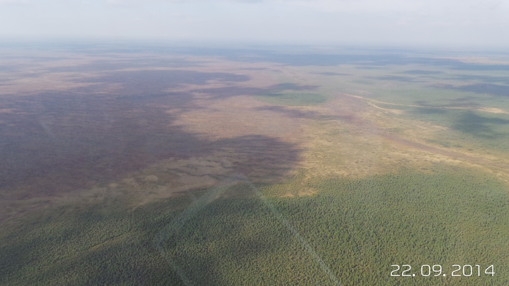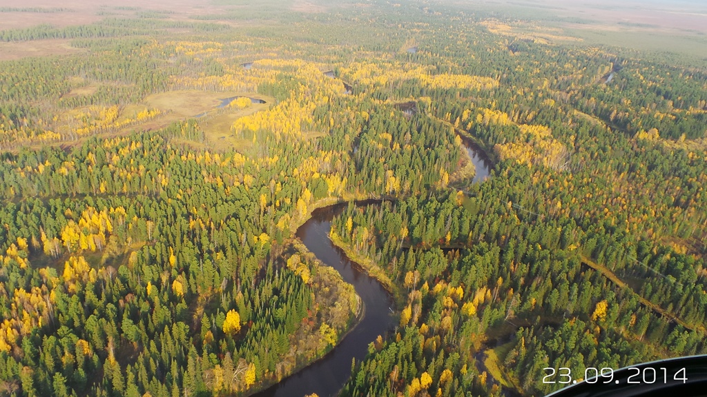 Что интересно, в этой глухомани с борта спокойно работает связь Мегафон, причем с 3G, вот что делает газ и нефть. Тут и там из леса торчат вышки, пересекаешь многочисленные газотрассы, пролетаешь компрессорные станции, жизнь кипит. Народное достояние.
