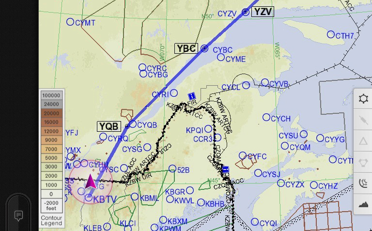 Если получится с погодой и расходом, рассчитываем долететь до Goose Bay, а если нет, то в Сет-Иль (Sept-Îles, CYZV). Нас с Запада Канады подгоняет циклон.